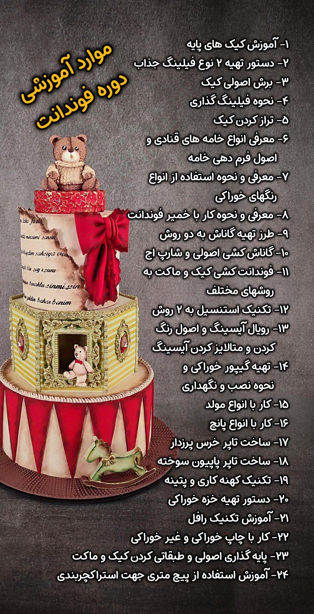 مدرس و دکوراتور کیک های خامه ای، فوندانت و فیگور
